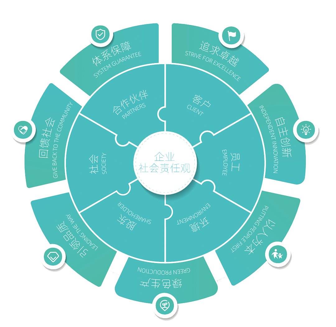 通过不断进步的产品和服务为环境的友好和社会的和谐作出贡献,以可持续的稳健发展为社会不断创造财富。